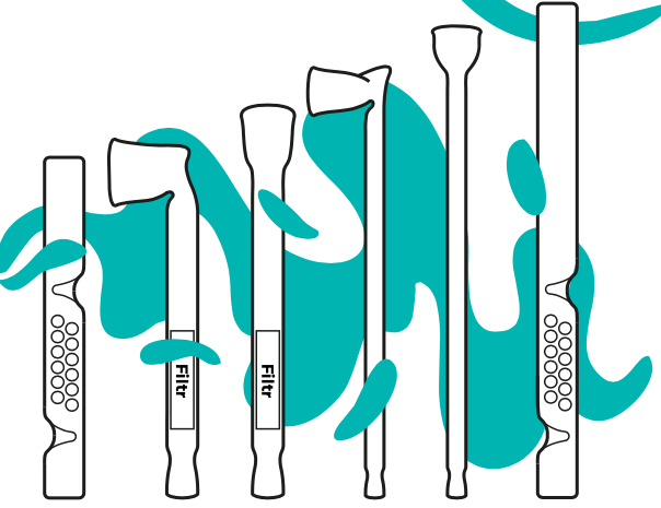 Upon request and special order, we can also produce glass tubes with an installed carbon or ball filter. Please email for details.
